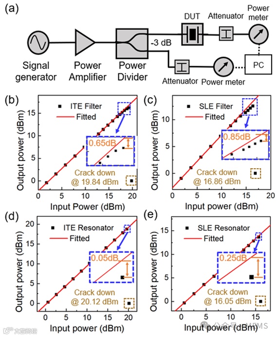 图6 谐振器与滤波器的功率处理能力测试系统及结果