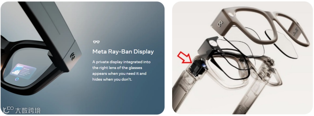 图1:Meta发布的Ray-Ban Display智能眼镜及LCoS光机位置示意(图片来自Meta官网和网络)
