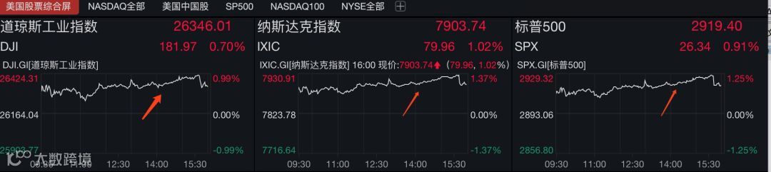 9日,美股三大指数全线高开高走,会议纪要公布后,三大指数稳健上行,尾盘受欧美贸易消息影响小幅下挫。截至收盘,道指涨0.70%,报26346.01点;标普500指数涨0.91%,报2919.40点;纳指涨1.02%,报7903.74点。