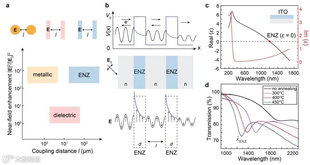 图1:近零介电常数薄膜材料的长程光学耦合和与量子隧穿效应的类比。