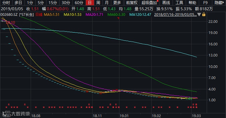*ST长生自2018年7月16日开始连续录得32个跌停,股价从25元左右一路跌到3元左右。