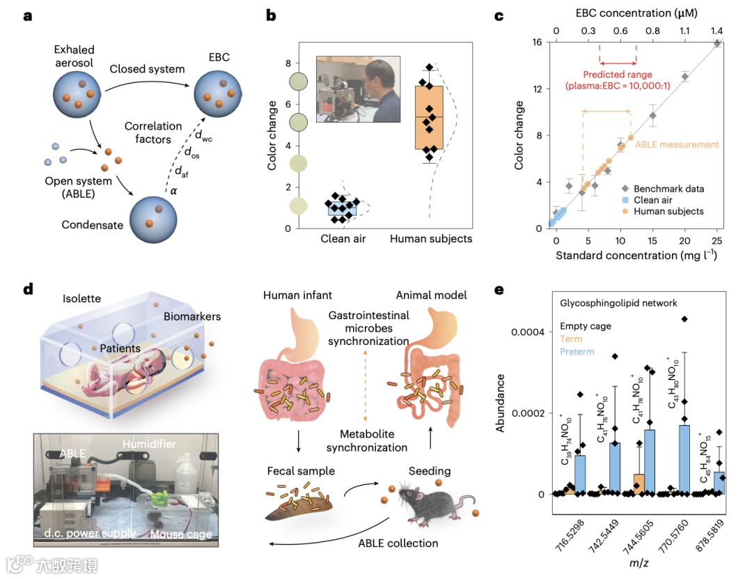 研究团队首先建立了空气中生物标志物稀释因子的校正模型,并基于此模型设计并进行了人体实验和早产儿动物模型来验证ABLE无创检测人体呼出物成分的性能。