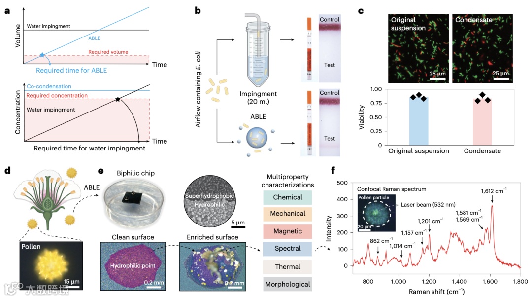 图5进一步展示了ABLE系统的多功能性:它不仅能够检测分子生物标志物,还可高效富集颗粒态生物标志物(如细菌、病毒、过敏原及物理颗粒等)。