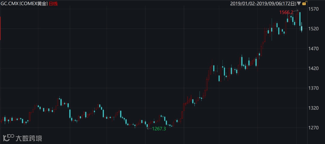 今年以来COMEX黄金走势