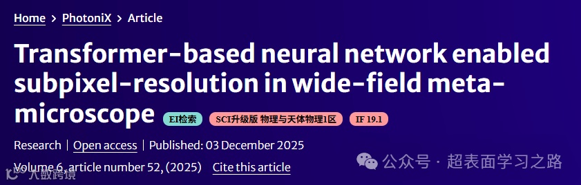 Hu, S., Wang, Z., Li, J. et al. Transformer-based neural network enabled subpixel-resolution in wide-field meta-microscope. PhotoniX 6, 52 (2025).