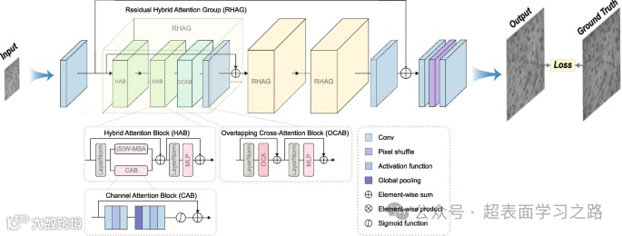 其由自注意力、通道注意力以及一种新的重叠交叉注意力组成,以激活更多像素以实现更佳的重建。网络使用通过超构透镜(1×)和超构透镜(3×)获取的实验图像对进行端到端训练。