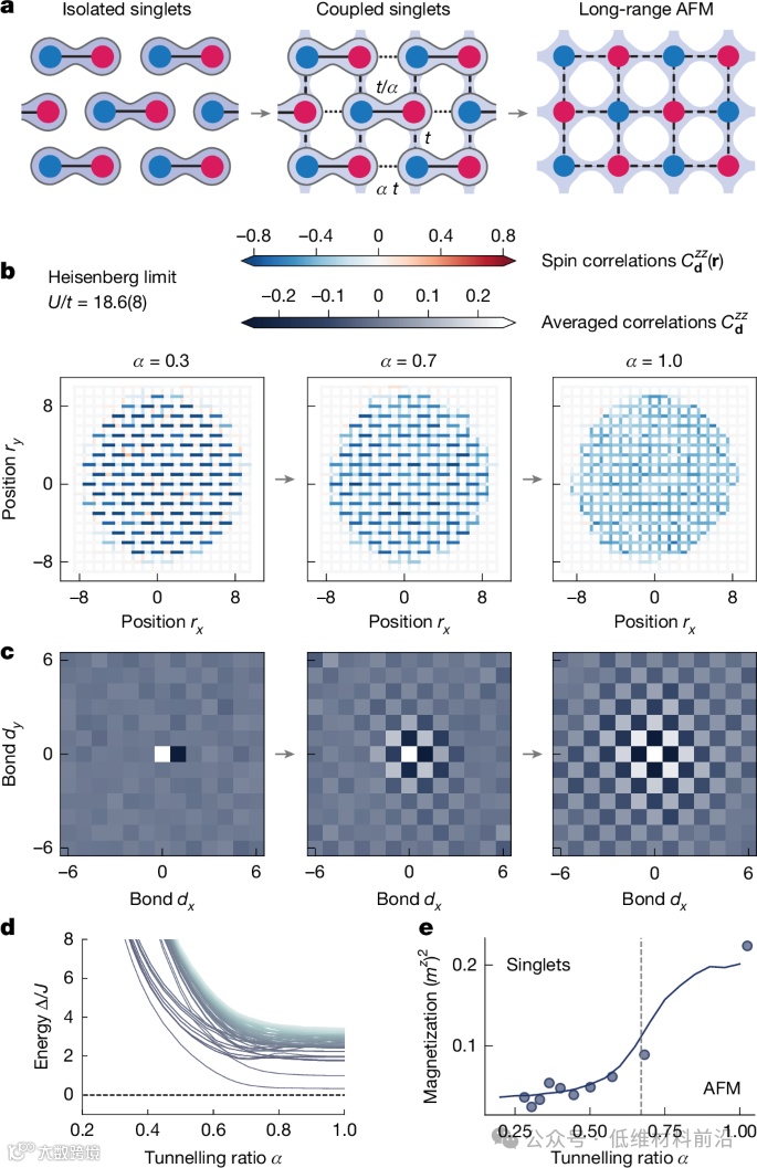 图2 | 将能带绝缘体band insulator劈裂成海森堡反铁磁体。