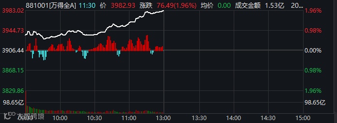 万得全A指数今日早盘表现