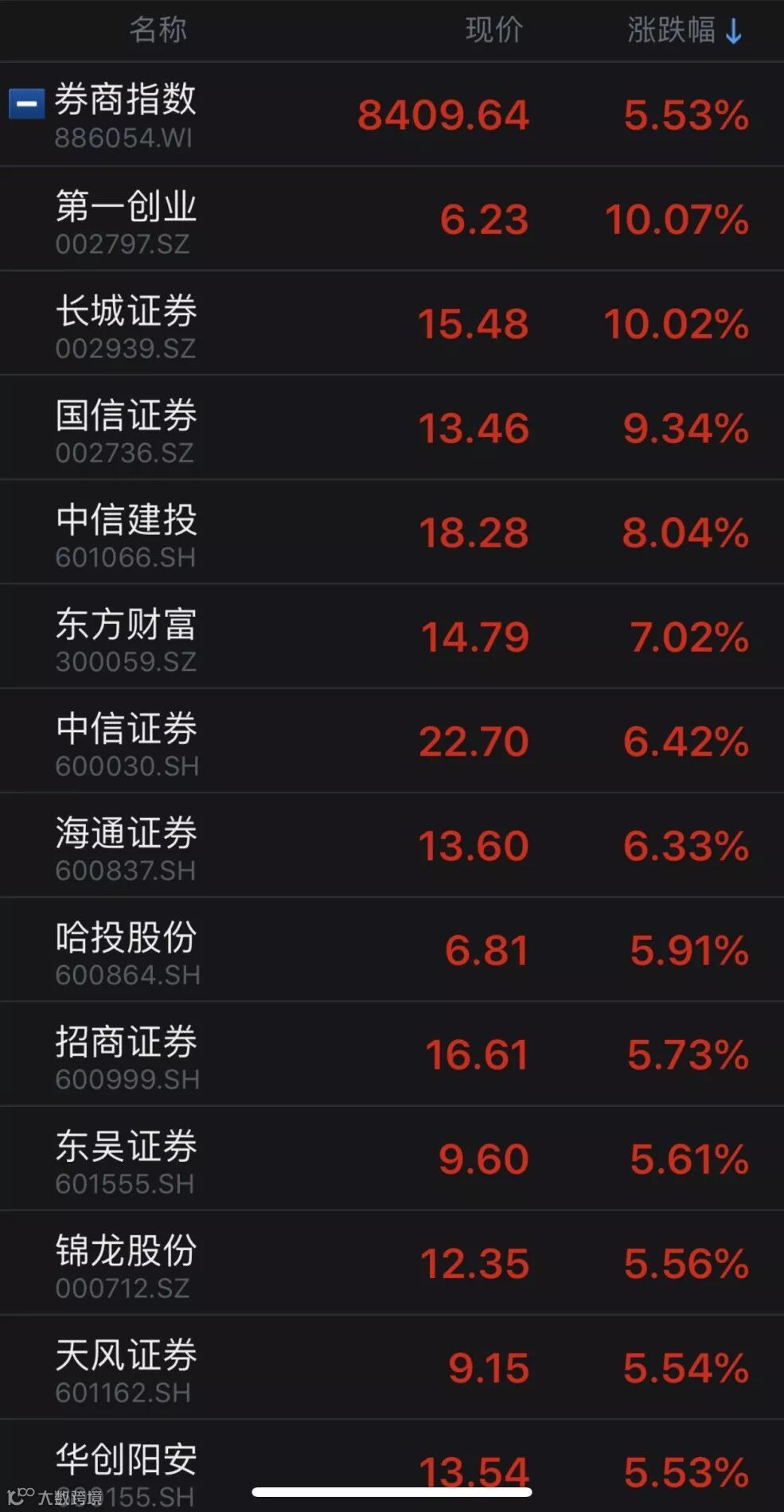 此外,券商板块也有所表现,券商指数上涨5.53%,第一创业、长城证券涨停,国信证券涨幅超过9%。