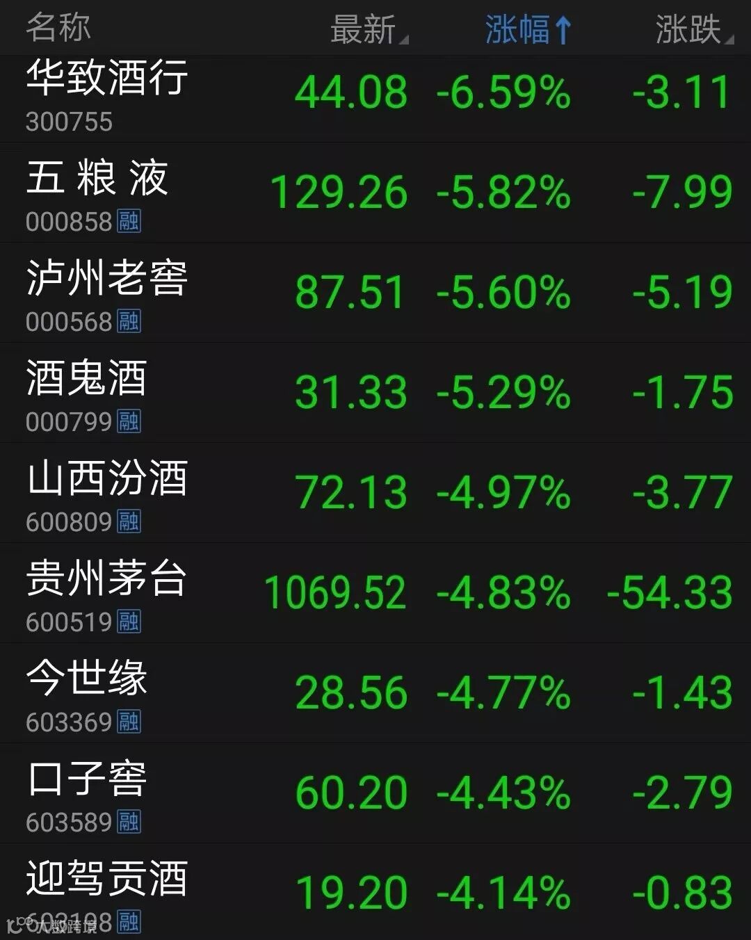 贵州茅台下跌也带崩了整个白酒板块。