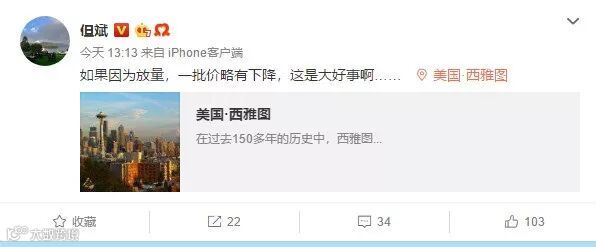作为贵州茅台的忠实粉丝,深圳东方港湾投资董事长但斌在微博上表示,如果因为放量,一批价略有下降,这是大好事啊。