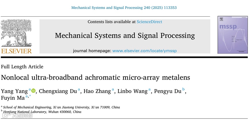 西安交通大学机械工程学院马富银教授课题组,提出一种非局部声波调控原理,并基于COMSOL-MATLAB联合仿真平台,借助多构形竞争的设计策略实现微型阵列声学超透镜的宽带消色差设计。在该方法中,单元设计不止局限于一种简单结构,而是在多种简单结构中不断评估与优化。同时,并联式的共振腔设计会导致单元之间存在相互作用,导致一种非对称共振现象的出现,进一步拓宽了工作频带。基于此原理设计出的超透镜结构简单,尺寸小巧,工作频带宽,信号波动小,解决了功能复杂性与结构简单性之间的矛盾。