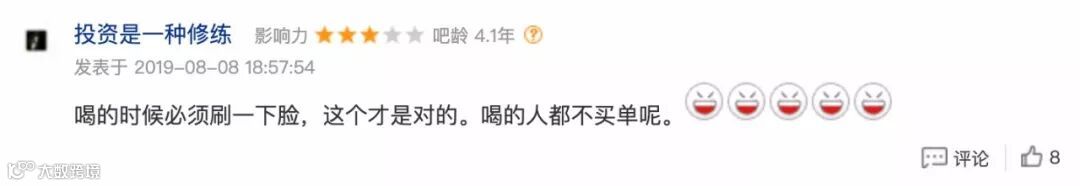股吧已经开启了吐槽模式。有网友表示,喝的时候必须刷一下脸,这个才是对的。现在有的人喝酒不是自己买单。