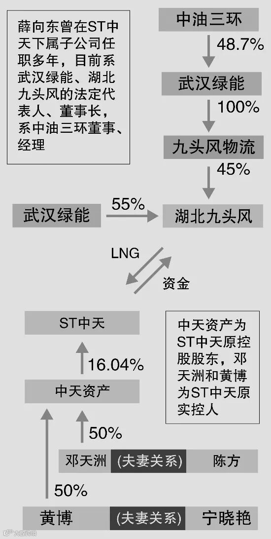 ST中天书面回复中国证券报记者称:“武汉绿能是中国国储能源化工集团股份公司下属石油天然气物流平台企业,与ST中天、中天资产是客户关系。中天资产、邓天洲、黄博与武汉绿能、湖北九头风、九头风物流无产权关系,不拥有控制权。”