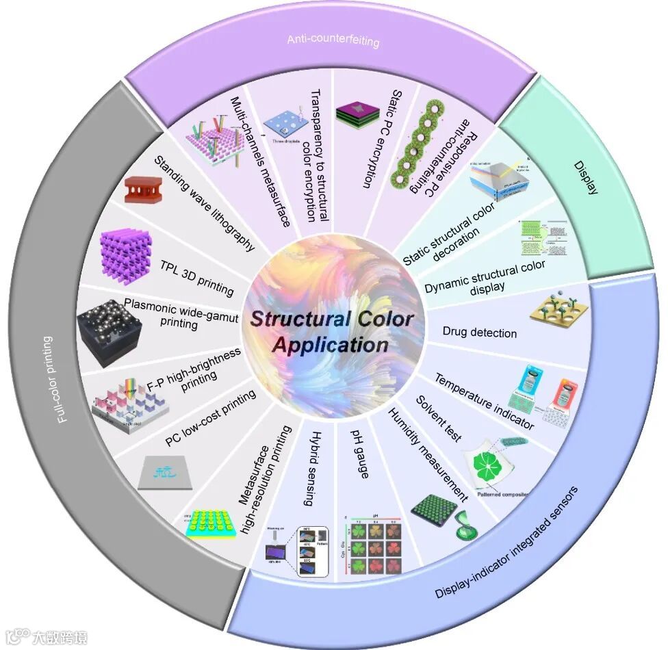 该综述介绍了结构色领域近年来的发展概况,讨论了目前主流的应用场景,指明了未来发展应聚焦智能结构色器件开发、微纳结构数据库,完善从设计到加工的闭环链路并扩宽结构色应用场景。