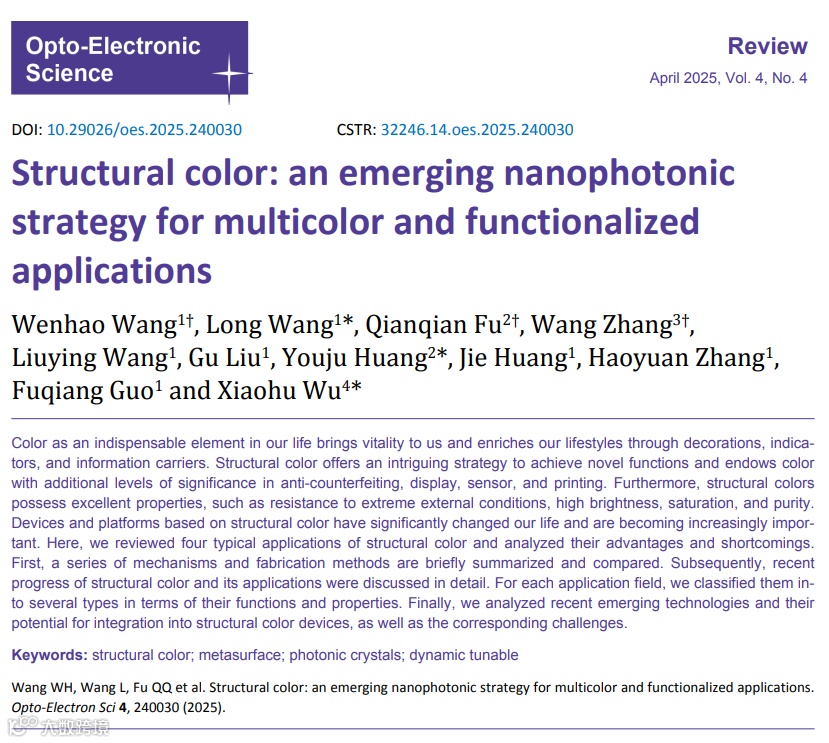 封底文章 | Wang WH, Wang L, Fu QQ et al. Structural color: an emerging nanophotonic strategy for multicolor and functionalized applications. Opto-Electron Sci 4, 240030 (2025).
