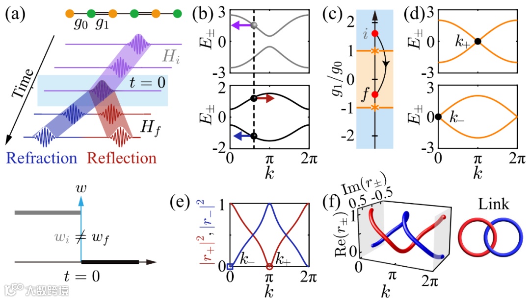 时间界面指系统全局参数在时间维度上突变形成的边界。当电磁波穿越分隔两个空间均匀介质的时间界面时,会发生时间折射与时间反射,遵循由麦克斯韦方程组时空对偶性推导出的时间斯涅尔定律。由于时间(空间)平移对称性,能量(动量)在时间(空间)界面前后分别守恒,因此空间界面上的动量变化对应于时间界面上的能量变化。理想的时间界面要求系统在远短于波动时间尺度内迅速变化,这对材料提出了很高挑战。近年来,随着近零折射率材料、微波系统和声学系统中时间界面的实验实现,时间域操控电磁波的潜力逐渐展现。周期性折射率突变构建了光子时间晶体,孕育出非平凡动量带拓扑及时间拓扑界面态,揭示了时间版体-边对应关系:体态拓扑不变量决定不同区域间界面态的存在。尽管已有丰富的空间(或时间)拓扑界面态研究,但在空间拓扑不同的系统中引入时间界面所引发的拓扑效应尚未被探索。最近,基于SSH链的实验首次实现了超冷原子系统中的时间界面,并验证了时间斯涅尔定律。由此引出:当时间界面分隔空间上具有不同体拓扑的区域时,会出现怎样的拓扑特征?