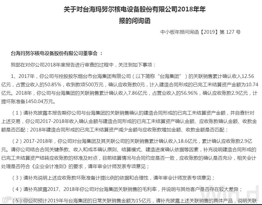 首先是今年5月10日发布的年报问询函,在这份问询函中,深交所中小板管理部关注了公司与大股东之间巨额关联交易以及收入确认方式、业绩同比大幅下滑、是否存在跨期提前确认收入的情形,以及控股股东增持进展等情况。