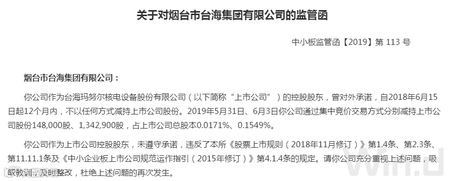 深交所由此下发关注函,关注公司子公司德阳台海的偿债情况,并就公司违规减持发布监管函。