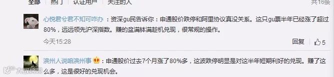 也有股民直言:“申通股价跌停和阿里协议没关系。这只股票半年已经涨了超过80%。赚得盆满钵满趁机兑现,很常规的操作。”