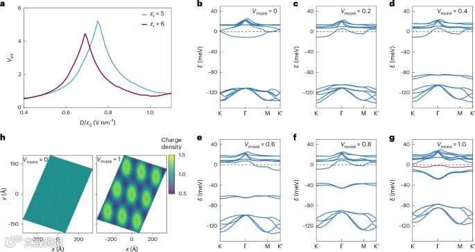 (3)研究还通过理论分析证明了莫尔势在形成平坦陈带中的关键作用。莫尔势不仅能有效调控电子的相互作用,还能实现均匀的Berry曲率分布,从而为实现分数量子反常霍尔效应提供了有力支持。