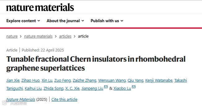 Xie, J., Huo, Z., Lu, X. et al. Tunable fractional Chern insulators in rhombohedral graphene superlattices. Nat. Mater. (2025).