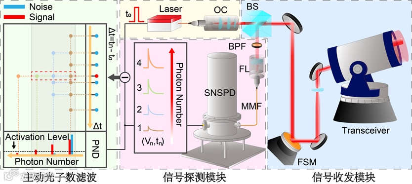 图1. 光子数分辨激光雷达系统示意图和APNF原理示意图。