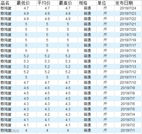 7月以来北京新发地农产品散鸡蛋批发市场信息