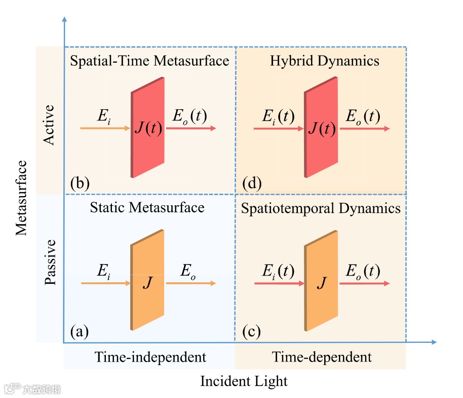 人工微结构的超表面可以通过亚波长尺度的光-物质相互作用在空间上操纵光场,并在非线性光学和量子信息中的波前控制方面发现了巨大的应用价值。由于在时空上控制光波的特性,主动的超构表面引起了人们的极大关注。近来,通过引入光学频率的梳状光源,以无源配置展示了能够连续导光和时空重定向的频率梯度超构表面。这项开创性工作显然表明,利用入射光场的动力学特性,超构表面具有实现非平庸功能和奇特的光学时空现象的巨大潜力。 然而,目前仍然严重缺乏对超表面与时间相关的入射光之间的动力学相互作用的研究。