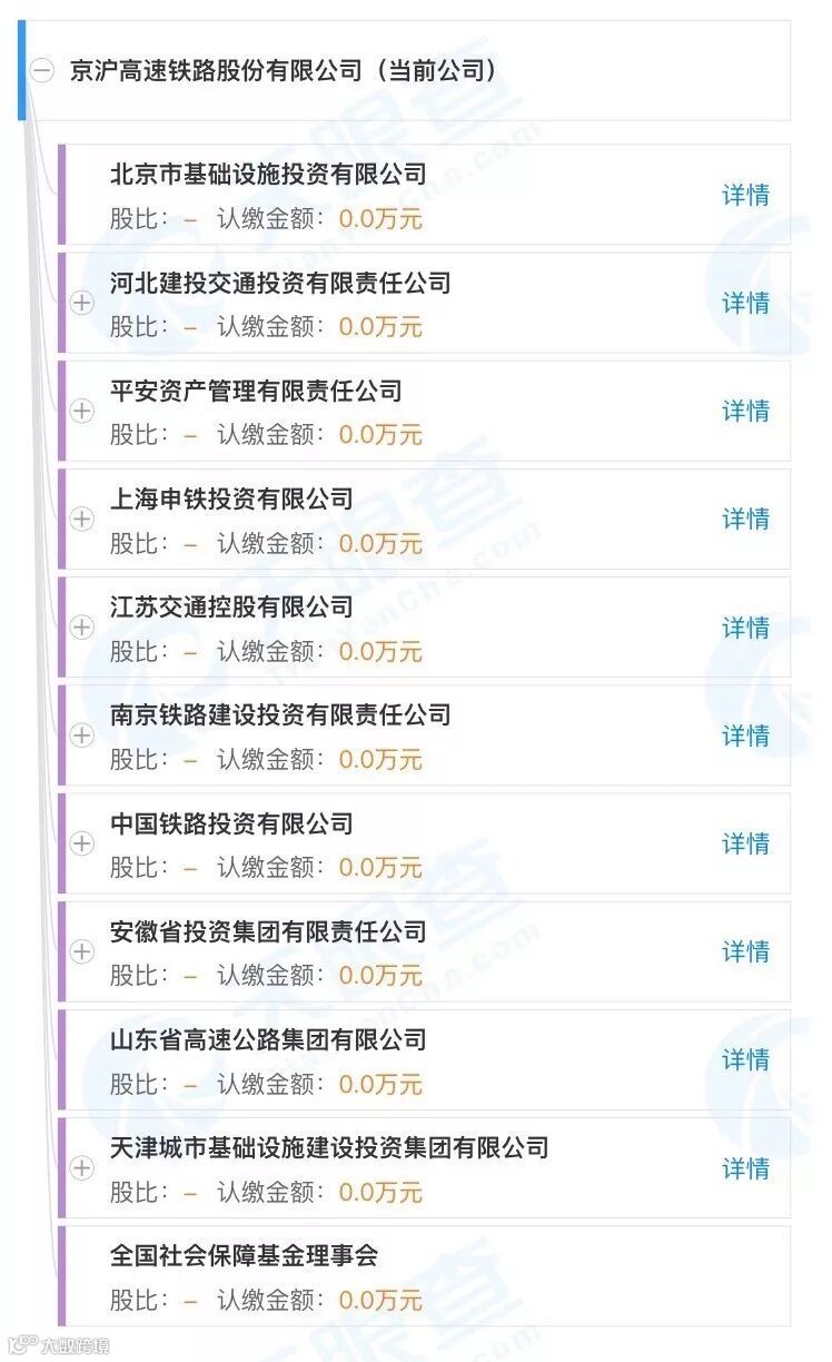 天眼查显示,京沪高铁公司目前有11个股东。