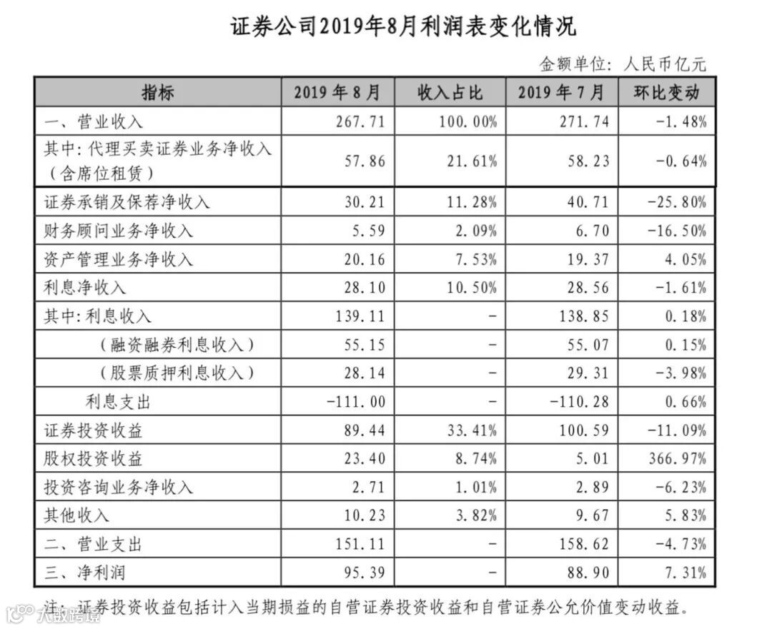 中国证券报(ID:xhszzb)记者获悉,中国证券业协会近日向各家券商下发了《证券公司2019年8月财务经营情况简报》(以下简称《简报》)。《简报》显示,131家券商8月净利润同比增加近500%。