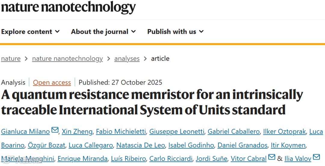 确保人类知识各领域测量的可靠性与准确性,对于保障科学技术正常运转、提升日常活动舒适度与品质有重要作用。为实现这一目标,各国国家计量机构负责建立、研发并维护测量单位的主要基准。在电学计量领域,量子霍尔效应、约瑟夫森效应和单电子输运效应等量子现象,已分别被广泛应用于电阻、电压和电流单位的实际复现。尽管基于这些量子现象的计量器件已展现出卓越性能,但其庞大的实验装置和复杂的测量流程,导致其实现阶段几乎仅限于高校和计量机构。在SI框架下,基本电导量子G0是一个具有零不确定度固定数值的物理量。因此,任何展现与G0相关物理观测量实验或器件,均可用作电阻标准。虽有研究提出利用忆阻器件中的量子效应来解决电学标准芯片集成化的核心难题,但实验验证至今尚属空白。尽管已有多种方法在忆阻器件中实现量子电导水平,但由于在编程与控制此类量子能级方面缺乏实质性进展,其实际应用仍面临重重阻碍。