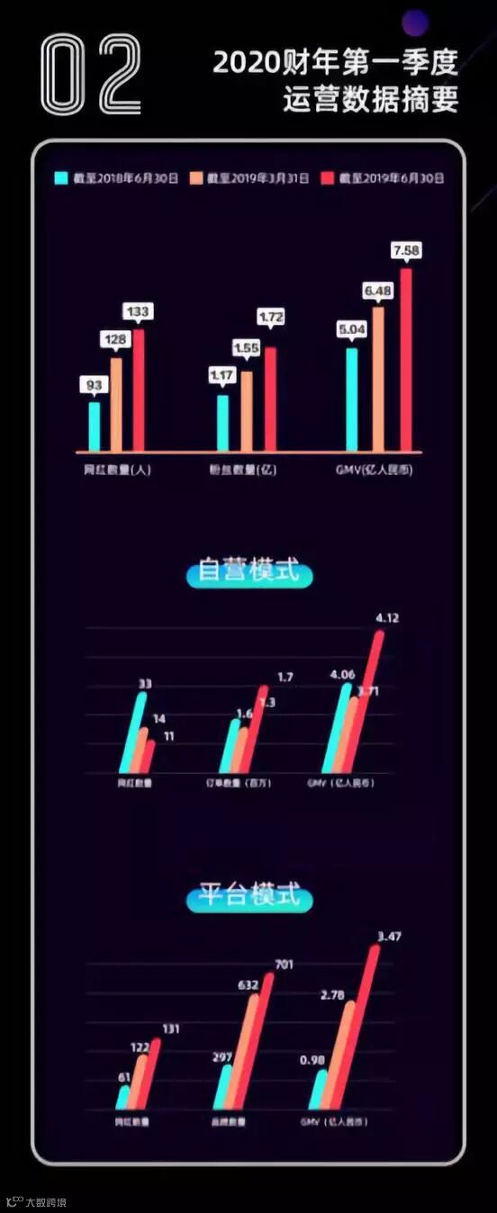 财报显示,截至2019年6月30日,如涵共签约网红数量为133个,其中头部网红3位,肩部网红8位,腰部网红122位,为其提供网红广告服务的品牌数量增加到701个。同期如涵GMV(一定时间段内的成交总额)达7.58亿元,同比增长50.4%;毛利为1.12亿元,同比增长93%。