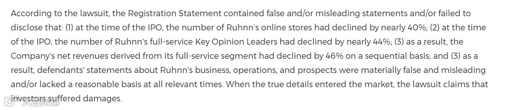 如涵控股上市至今股价已经砍半,美国多家律师事务所日前对公司发起集体诉讼声明称,如涵控股招股说明书中存在虚假、误导性声明或未披露的信息,导致其IPO后股价一路下跌,损害了投资者利益。