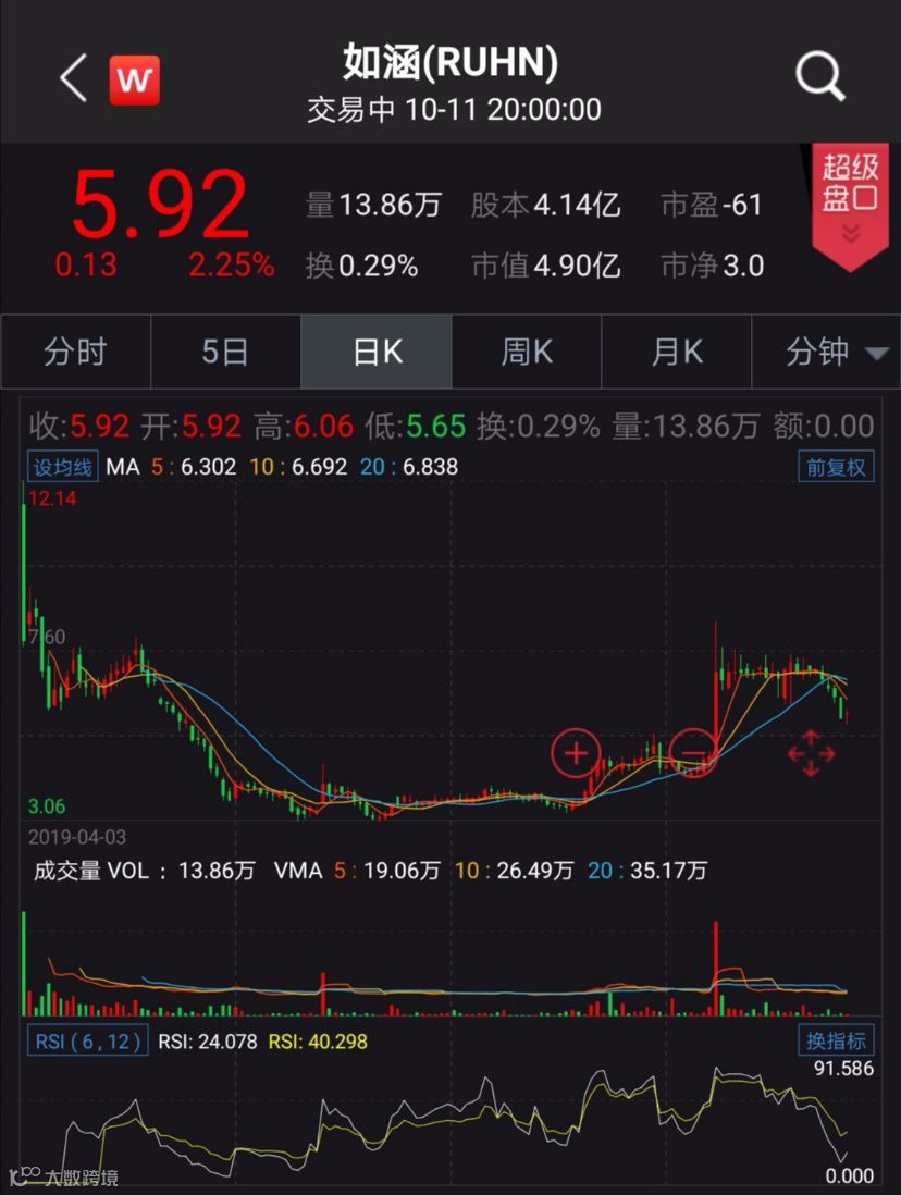 集体诉讼事件发生后,如涵控股10月10日股价跌去9.11%,至5.79美元/股。10月11日股价微涨2.25%,至5.92美元/股,但相比半年前的发行价已经砍半。如涵控股于今年4月3日在美国纳斯达克上市,发行价定在每股12.50美元,上市当天便破发,此后一路下跌,最低曾跌至3.06美元/股。