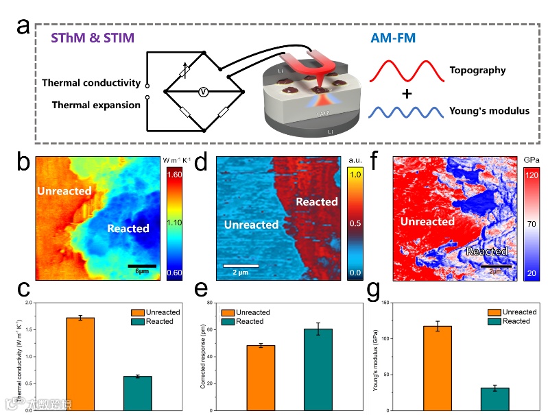 目前,固态电池领域关于电解质长效使役下的老化机理研究主要集中在电化学和力学特性退化方面,往往忽略了其热学性质的演化。电化学反应过程中所累积的热量可能影响电池性能,过多的热积聚甚至会引发热失控。已有研究报道在固态电解质与金属锂共同构成的固态电池中发生热失控现象,这引发了对固态电池热安全性的广泛关注。因此,深入理解固态电解质的热学性能及其耦合效应,对于提升固态电池的安全性与寿命具有重要意义。然而,当前对热学行为的研究多停留在宏观尺度,难以直观揭示电解质内部的微观力-热-化耦合过程。因此,亟需发展能够解析固态电解质微观热学特性及其耦合行为的表征方法。