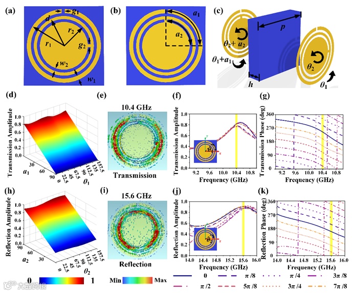 图2.四通道超表面单元的结构与特性