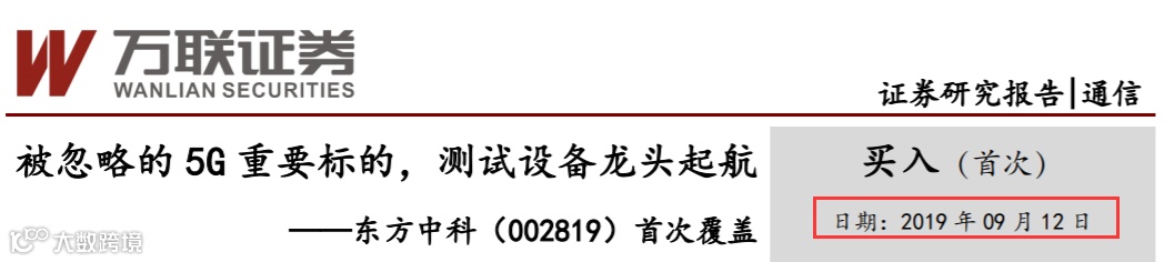 万联证券在9月12日发布的《被忽略的5G重要标的,测试设备龙头起航》指出,由于我国科技领域的历史原因和体制特征,多年来具备规模性测试设备系统解决方案的提供商仅有东方中科和中国仪器进出口集团。目前,东方中科占据着国内外众多测试设备巨头在中国大陆市场最大的销售份额,在5G标准制定和规模建设的众多核心测试设备中,公司拥有着客户资源、产品库存、资金和服务等多维度综合竞争力。