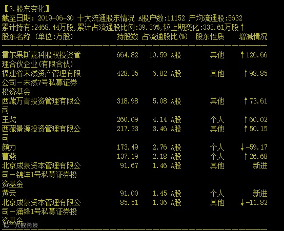 2017年第三季度,成泉资本的席位首次出现在东方中科前十大股东中。2019年中报显示,成泉资本锦沣1号、成泉资本涌锋1号为东方中科前十大流通股股东,合计持有178万股。
