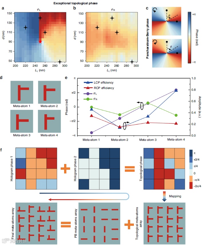 图3:用于圆偏振光(CPLs)解耦的片上拓扑超表面设计。