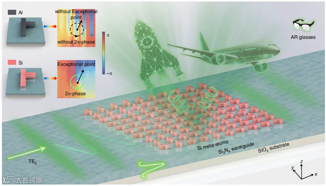提出的方法:设计片上全介质超表面,在 Si₃N₄波导上构建 Si 超原子,通过大规模筛选几何参数创建拓扑奇异点(EP);环绕 EP 获得 2π 拓扑相移,结合 Pancharatnam-Berry(PB)相解耦正交圆偏振通道,实现独立全息编码。