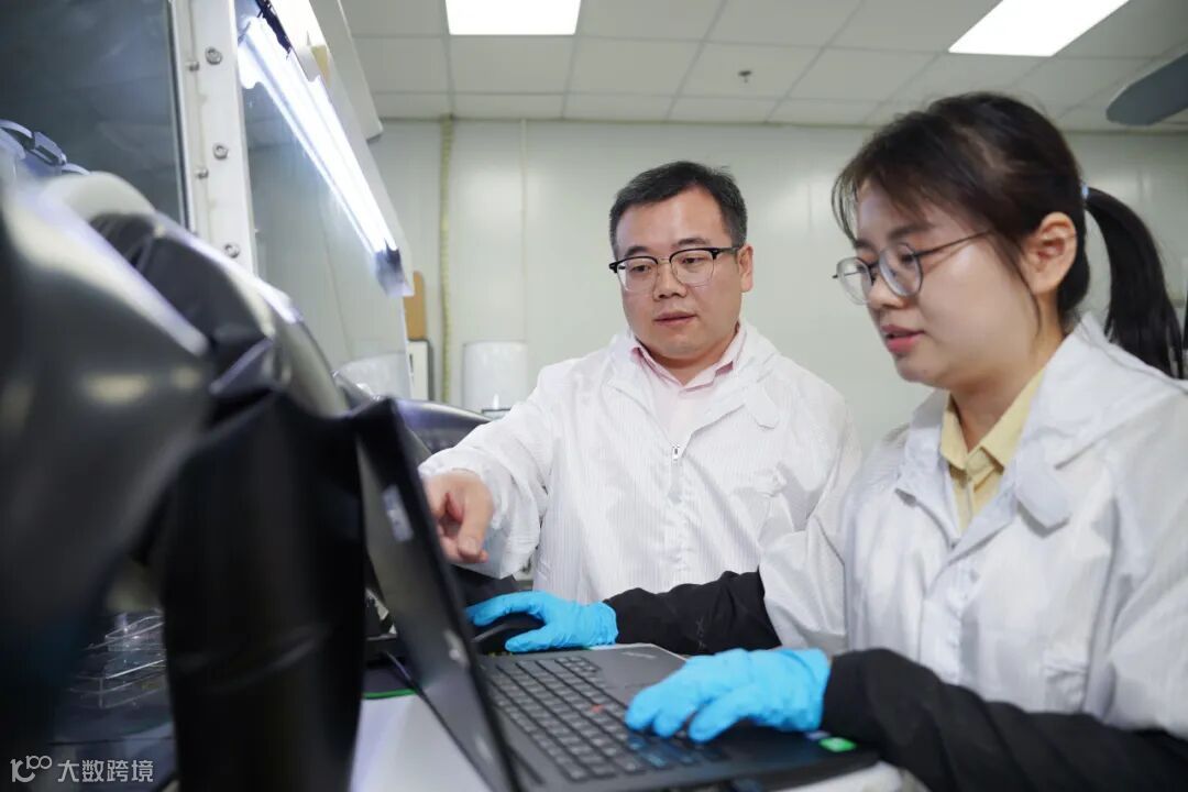 肖正国(左)与彭琛琛(右)讨论实验结果