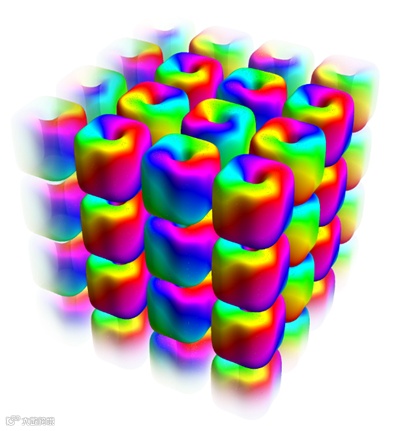 紧接着,研究小组发现了一种方法,可以生成具有二维周期结构的光束断面,并通过类似的方法叠加多个频率,从而生成具有空间周期性的三维霍普夫子晶体(图5)。