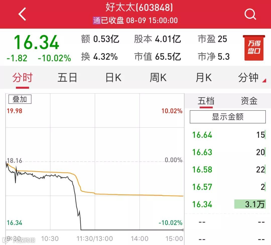 8月9日,好太太盘中闪崩并以跌停报收,全天成交金额为5299万元。值得一提的是,这是好太太近十个交易日以来的第二次跌停。