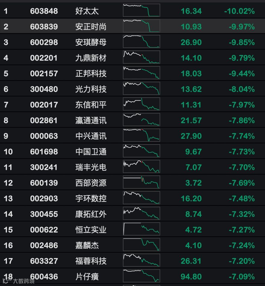 今天又有三只白马股在毫无征兆的情况下突然暴跌,安琪酵母、中兴通讯盘中一度跌停,片仔癀也一度跌超9%。
