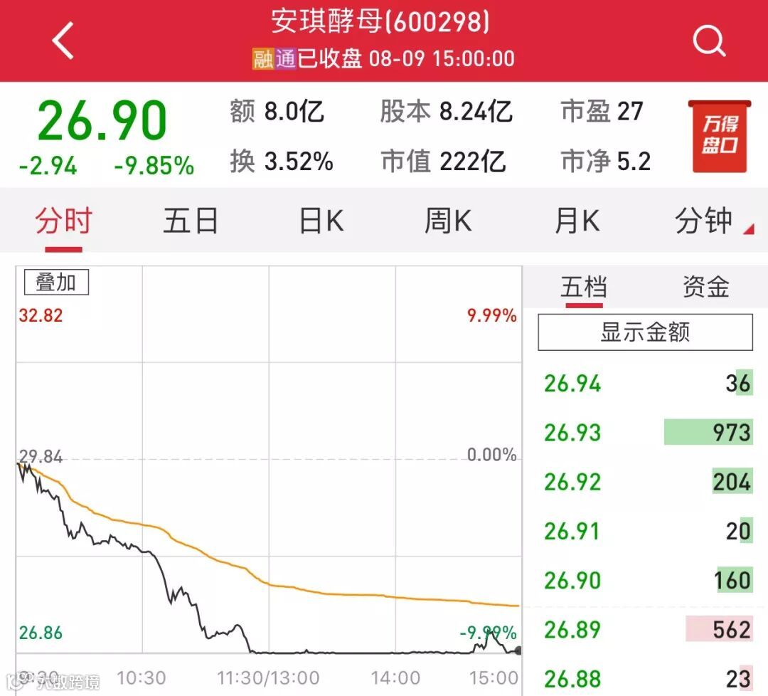 分析人士认为,安琪酵母中报披露的当口,市场担心业绩可能继续不佳,资金提前出逃。
