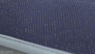 这只坐垫的表层面料,采用的是能做骑行服、体操服的莱卡面料,0.5cm的空间由1万多条线交织而成。