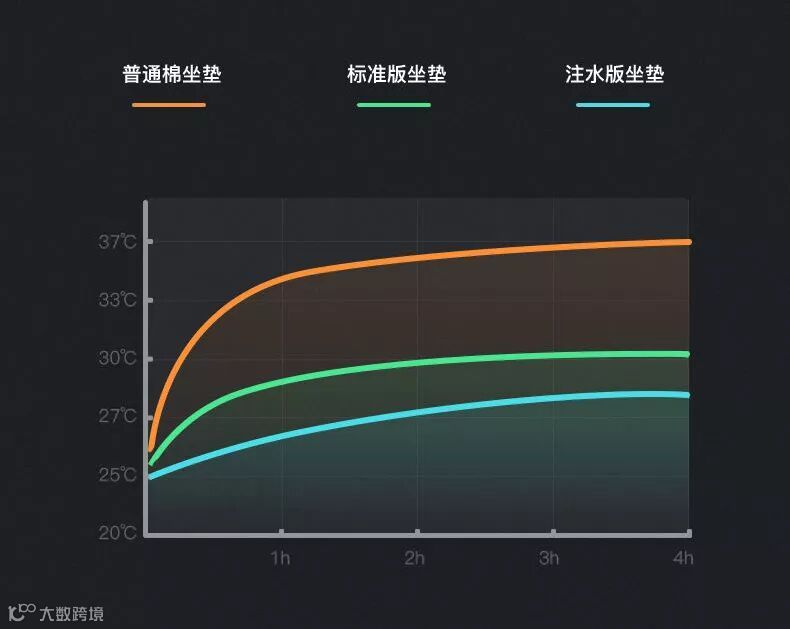 我们做过试验,基础充气款和充水款的坐垫,温差在12℃左右。