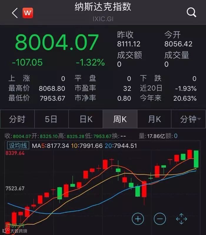 今年纳斯达克指数周线图