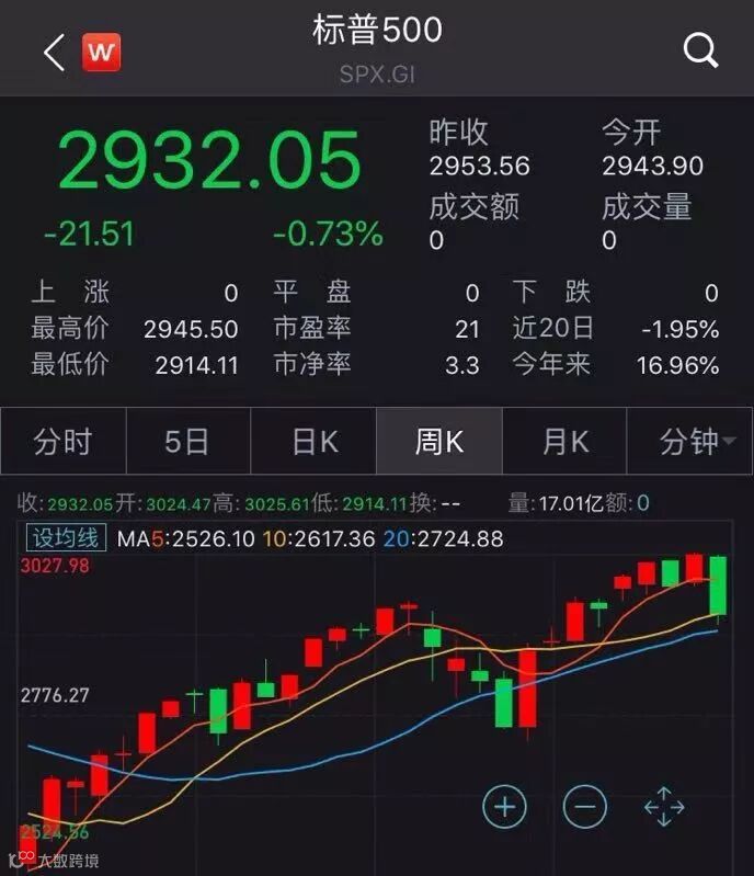 今年标普500指数周线图